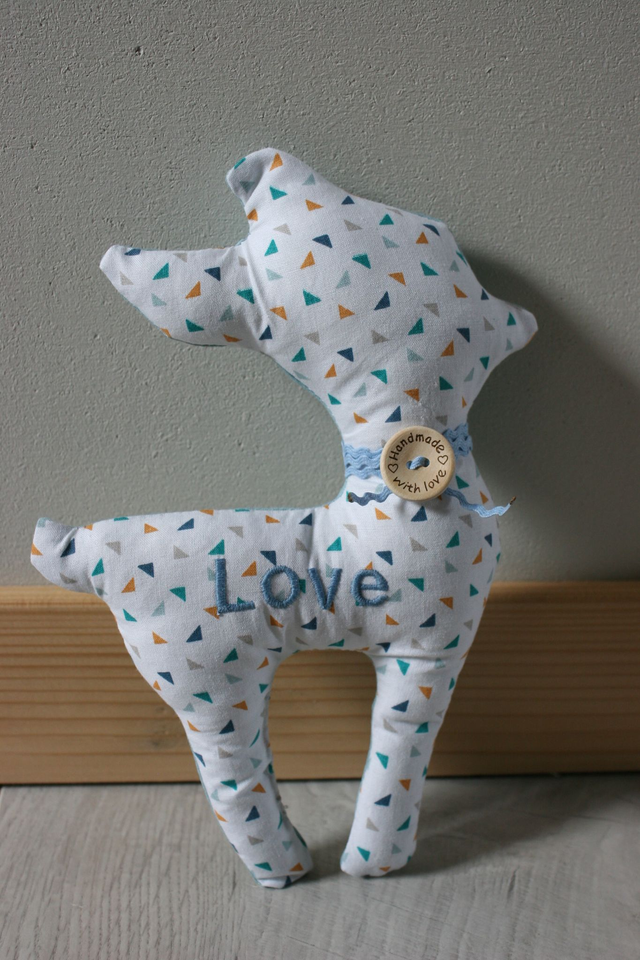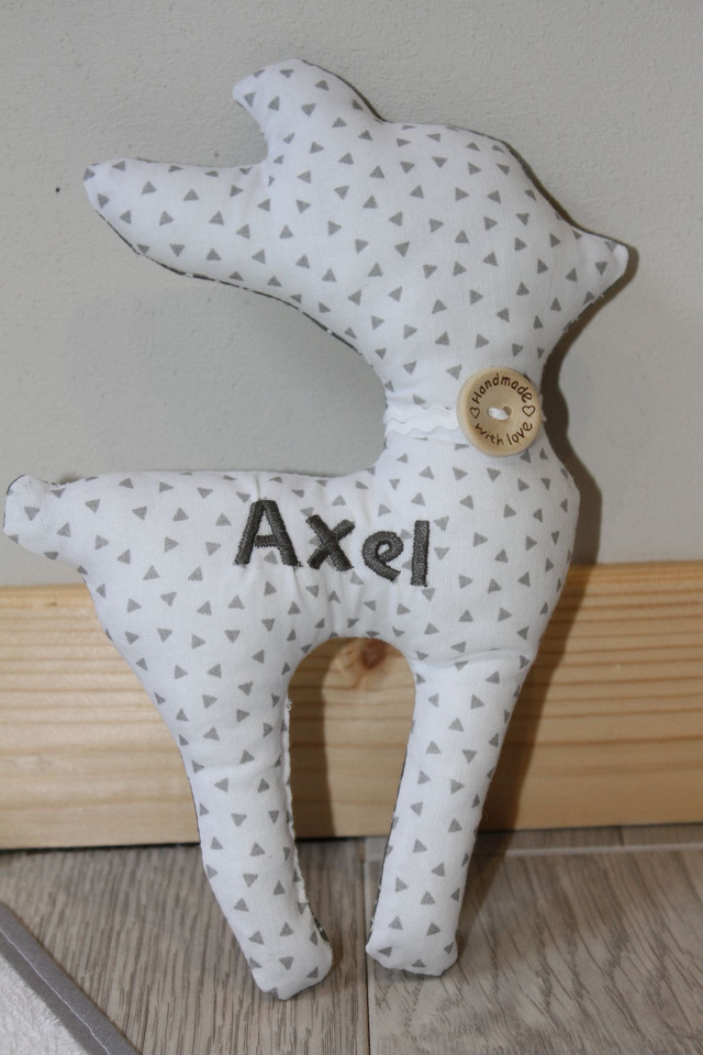 Bambi en tissu coton avec broderie prénom et grelot intégré.